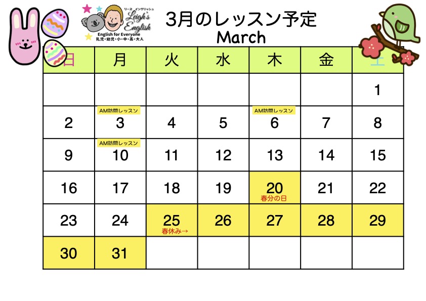・2月・3月AM訪問レッスン時