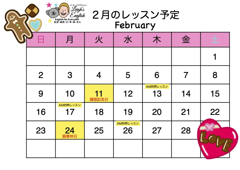 2月・3月のレッスン予定については画像の通りです。
