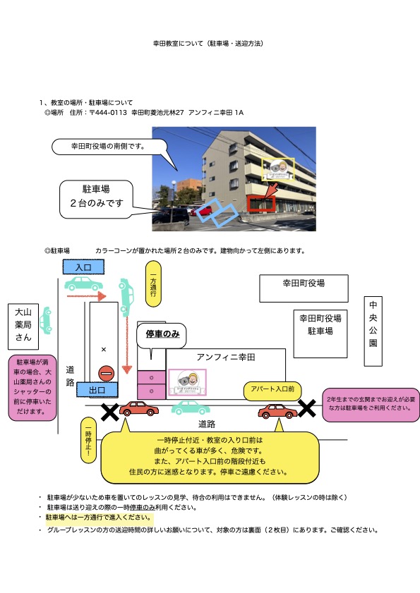 幸田教室をご利用の方、いつもスムーズな送迎にご協力いただきありがとうございます。