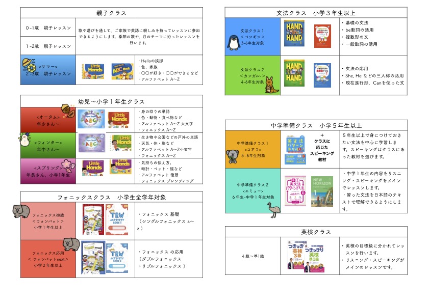 クラスの名称・内容については以下の通りです。PDFファイルはこちら